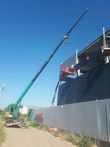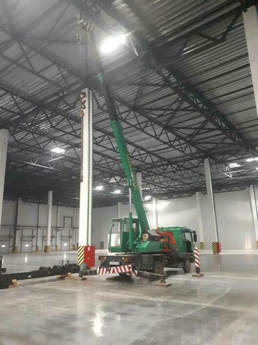 Идеально подходит для работы на небольших площадках и в стеснённых условиях. Незаменим при строительстве складов, коттеджей, домов, монтаже металлоконструкций и сендвич панелей. Опытный крановщик аккуратно выполнит работу.
