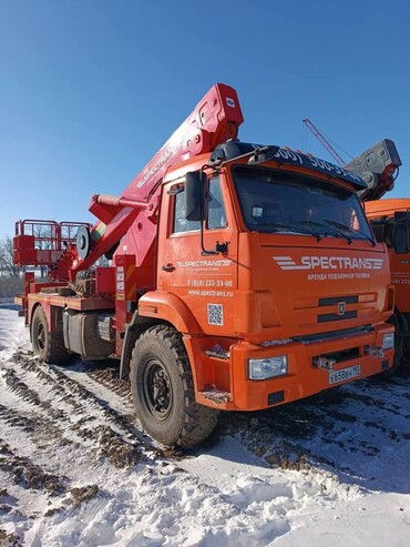 Автогидроподъемник на полноприводном шасси повышенной проходимости на базе КАМАЗ 43118. Предназначена для работ на высоте в труднодоступных и труднопроходимых местах, таких как лесополосы, заболоченная местность и строительные объекты.
