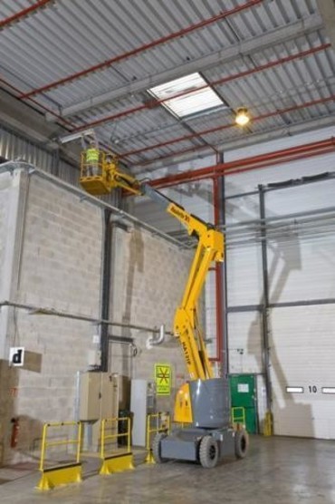 Коленчатый электрический подъемник Haulotte HA 12 IP обладает грузоподъемностью до 230 кг. При этом он поднимает грузы на высоту до 12м. Номинальная же высота подъема у него достигает 10м. Электрический коленчатый подъемник оснащен удобной и безопасной рабочей платформой, размеры которой составляют 1,2 x 0,8 м. Конструктивная масса данного механизма приблизительно равна 5910 кг. Высокую маневренность этому подъемнику обеспечивает возможность перегиба над препятствием до 5,25 м. Этот коленчатый подъемник можно использовать даже на неровных поверхностях благодаря тому, что он способен преодолевать продольный уклон до 25%. Источником питания ему служат тяговые моноблоки мощностью 48 В (6 x 8 360 А/ч). Скорость передвижения у данной модели достаточно высока - 2,2 / 4,8 км/ч. Высота в транспортном положении не превышает 1,99 м