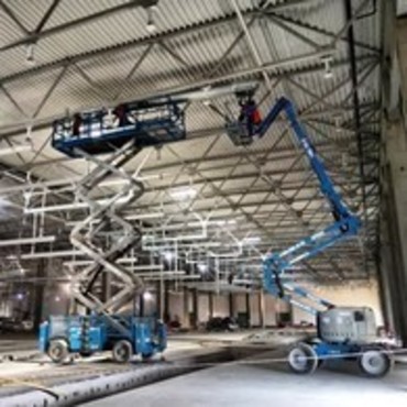 Подъемник дизельный, имеет привод 4*4, что позволяет свободно передвигаться по строительным площадкам. Управляется непосредственно самим монтажником с корзины. Высота работ до 16 метров.
