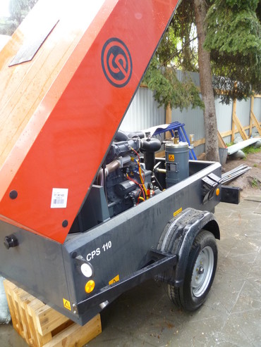 Дизельный передвижной компрессор Chicago Pneumatic CPS 110, Винтовой маслозаполненый, винтовая пара марки Atlas Copco, Производительность - 3 м3/мин, Давление - 7 бар, Двигатель - Deutz, Мощность - 23.3 кВт