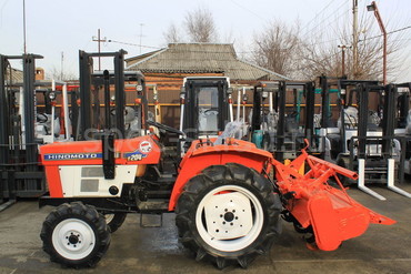 Японский трактор HINOMOTO E204D, полно приводной 4WD, дизель, механика, водяное охлаждение, 3 цилиндра, трех точечная навеска, фреза шириной 140 см, вал отбор мощности на три передачи от 540-1200 оборотов в мин. Без наработки по России, только из Японии, 20 л.с.