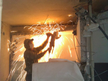 кирпиче, бетоне, разбор гипсовых стен, проем с усилением, выбиваем балконный