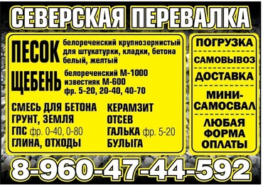 - Грунт, керамзит, отсев, булыга.